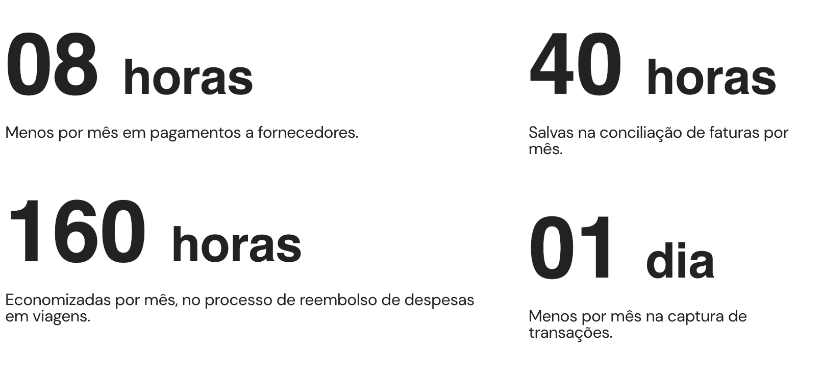 - Despesas corporativas (viagens, alimentação e mobilidade)