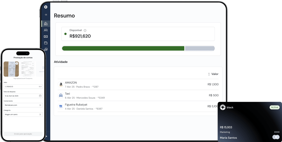 Oferecemos desde cartões de crédito corporativos inteligentes até uma conta digital, reembolsos e uma Plataforma de gestão de gastos em tempo real.
